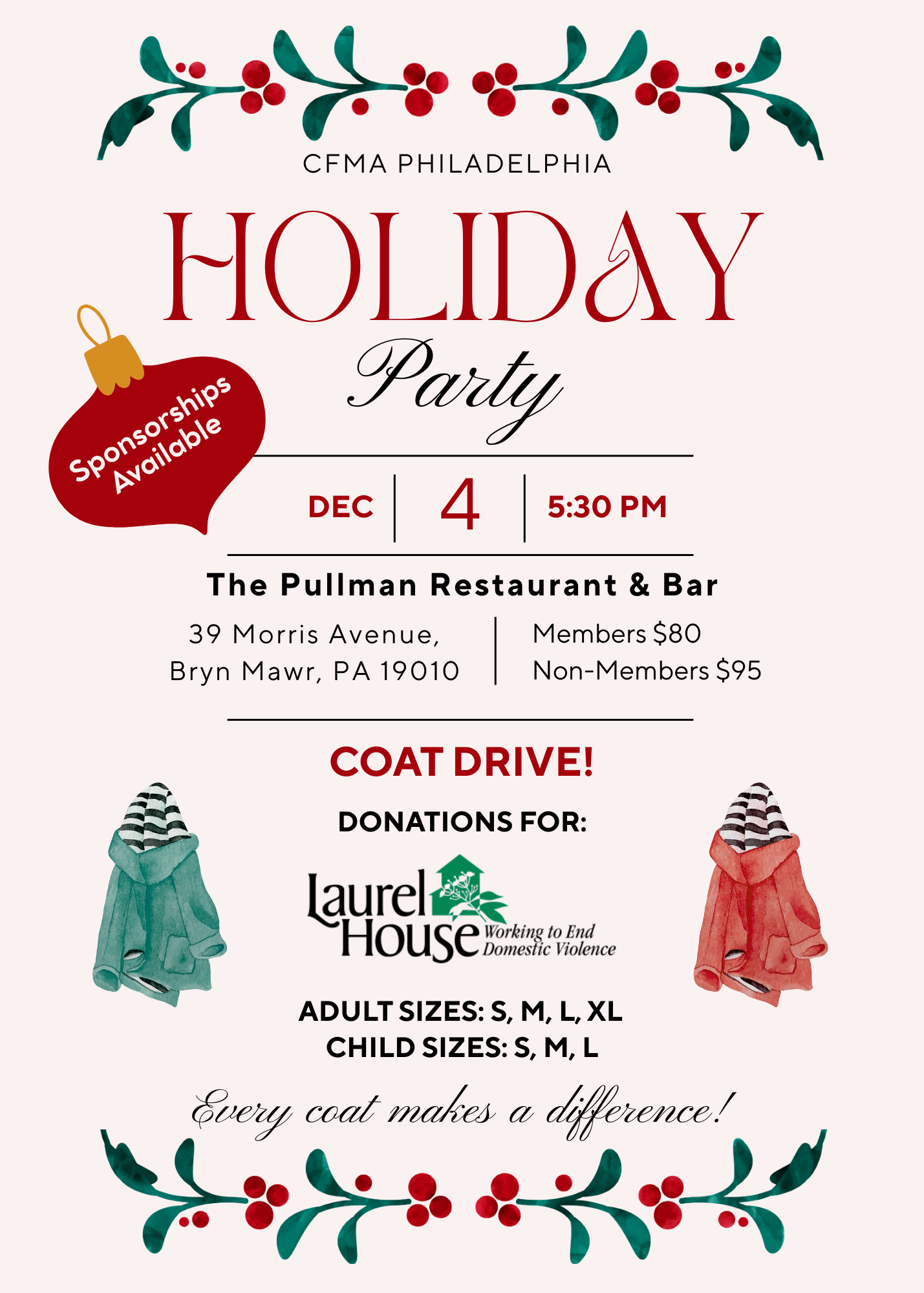 🌟Get ready to celebrate the season in style! Join us on Thursday, December 4 at 5:30 PM for CFMA Philadelphia’s Holiday Party at The Pullman Restaurant & Bar in Bryn Mawr. Enjoy a festive evening of great food, drinks, and holiday cheer with friends and colleagues.